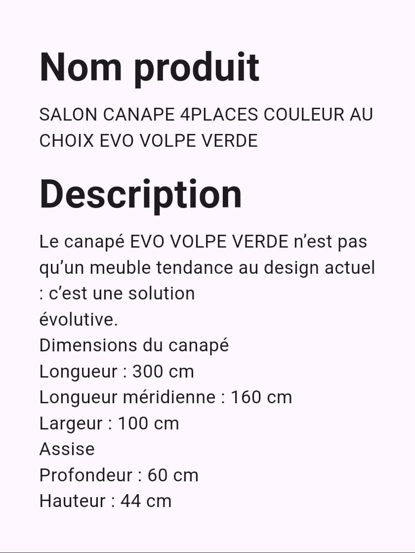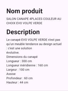 SALON CANAPE 4PLACES COULEUR AU CHOIX EVO VOLPE VERDE